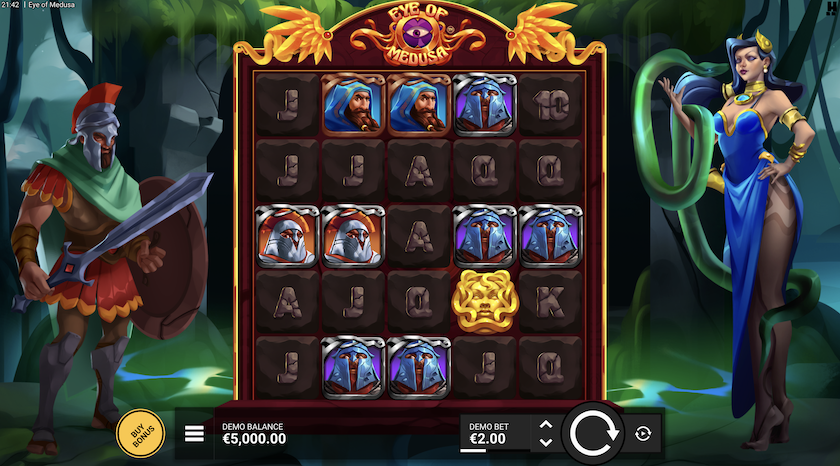 👁️ The Medusa symbol is more than just a terrifying face. If she lands during a low-paying win, she stays locked while other symbols cascade. For high-paying wins, the affected symbols become Petrified and fall to the bottom of the grid. When the cascade ends, these Petrified icons reveal multipliers of up to 500x, while Medusa herself can add a multiplier up to 20x to the total win!